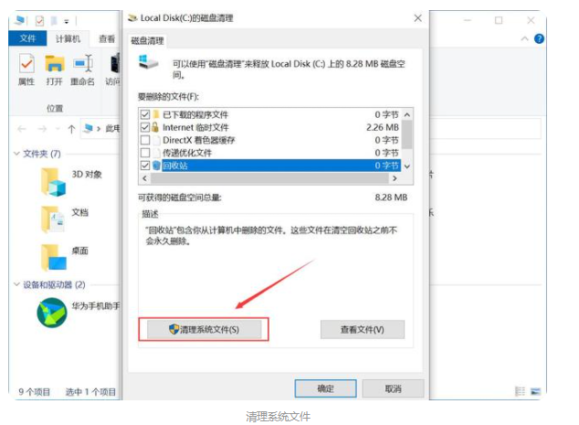 3、勾選需要刪除的文件,點擊“清理系統文件”即可。