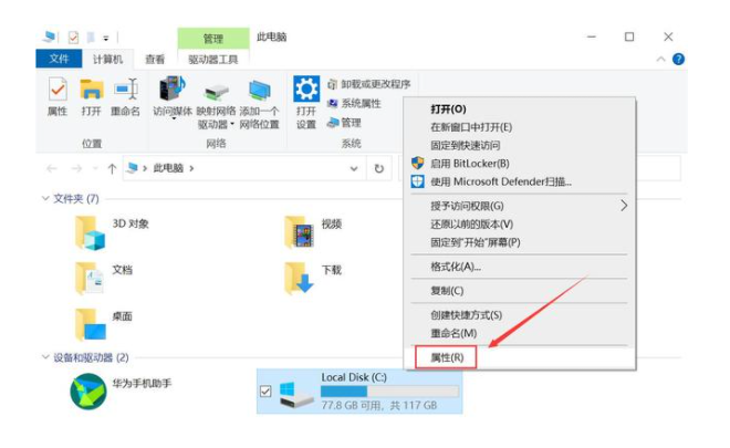 1、進入我的電腦,右擊c盤,然后點擊“屬性”。