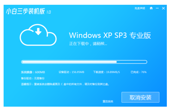 2、等待軟件自動下載所需WindowsXP鏡像,還有PE。