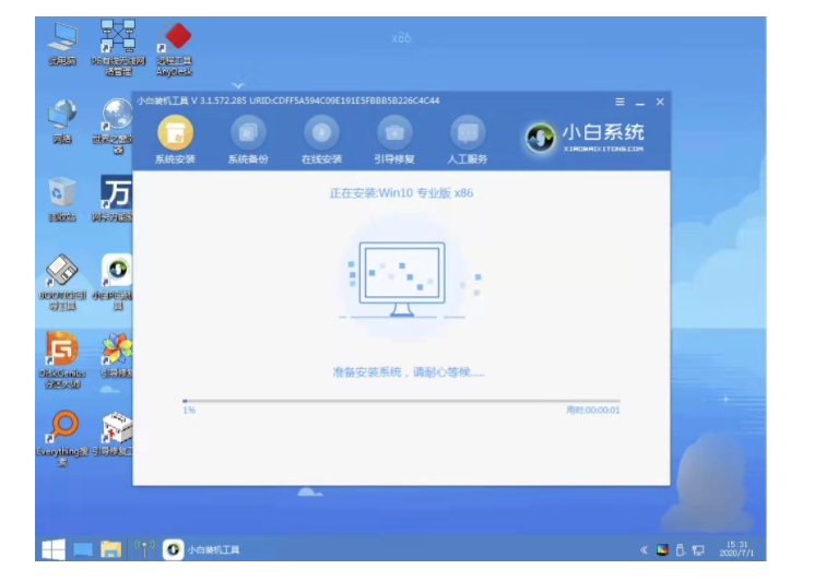 6、進入pe后,打開小白裝機工具繼續安裝系統,安裝完成后再次點擊重啟。