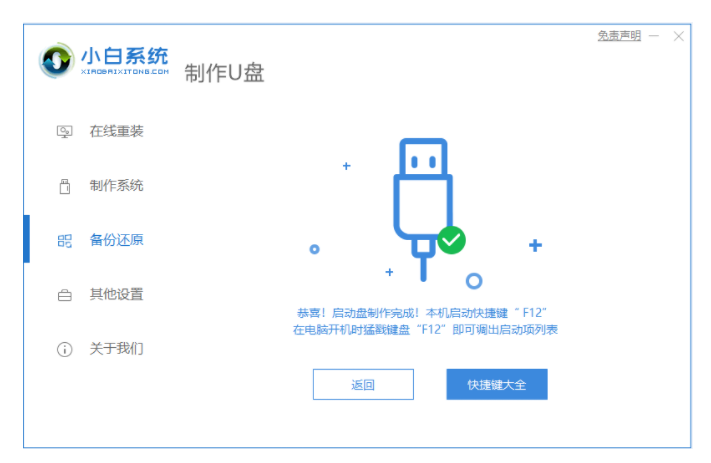 1、下載并運行小白系統重裝工具,制作U盤啟動盤;