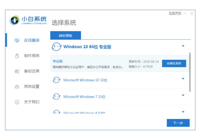 軟件版本:小白一鍵重裝系統+1個8g以上的空白u盤