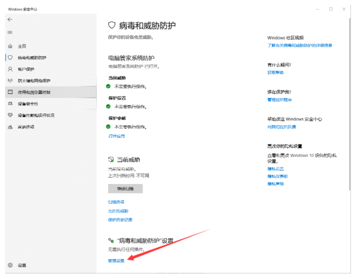 當遇到小白系統初始化配置資源失敗的情況該怎么辦?解放辦法很簡單,只需要關閉設置中的“病毒或威脅保護”的部分功能即可,具體操作方法如下: