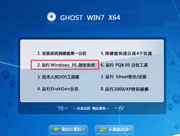 2、如果電腦顯示Press any key to boot from CD...,直接按回車,從光盤啟動進入主菜單,按數字2或點擊選項2運行【Windows PE微型系統】;