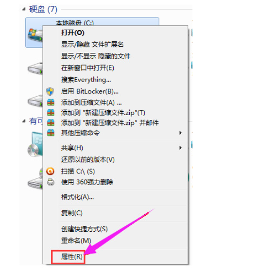 1、進入我的電腦界面,右鍵C盤,選擇屬性;