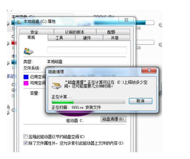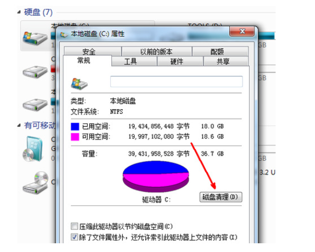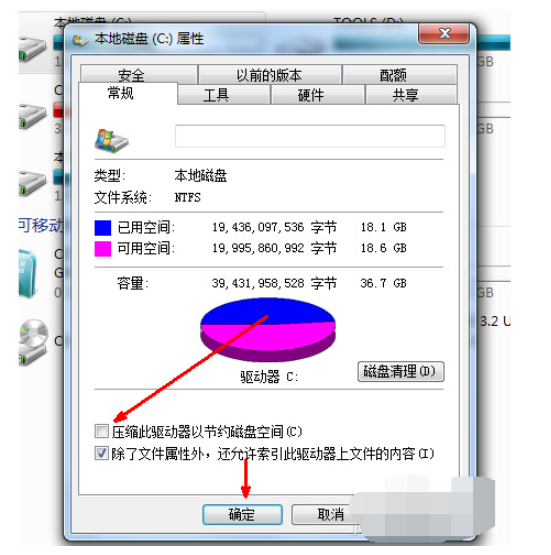 7、如果電腦的磁盤空間實在太小,在屬性頁中選中壓縮驅動器來節約磁盤空間。