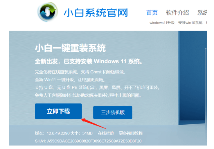 1、在小白官網下載一個小白一鍵重裝系統工具