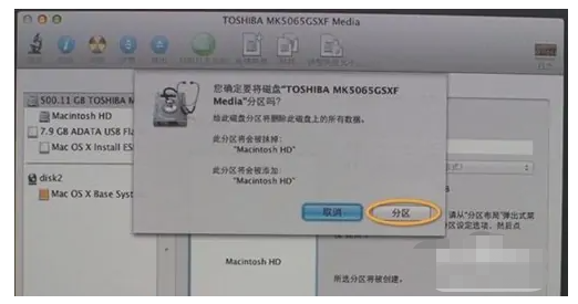 6、接著會彈出提示窗口,分區數據將被抹掉,點擊分區。