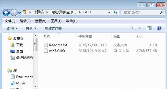 步驟一:首先我們把U盤做成啟動盤,使用WinRAR等工具把系統鏡像中的gho文件放到U盤GHO目錄。