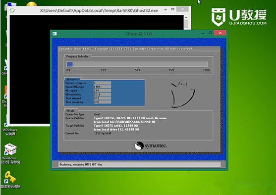步驟五:開始進行系統的還原過程,我們耐心等待。