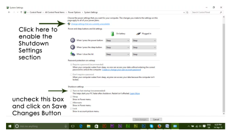 9、在這里,向下滾動并找到快速啟動選項并取消選中它。