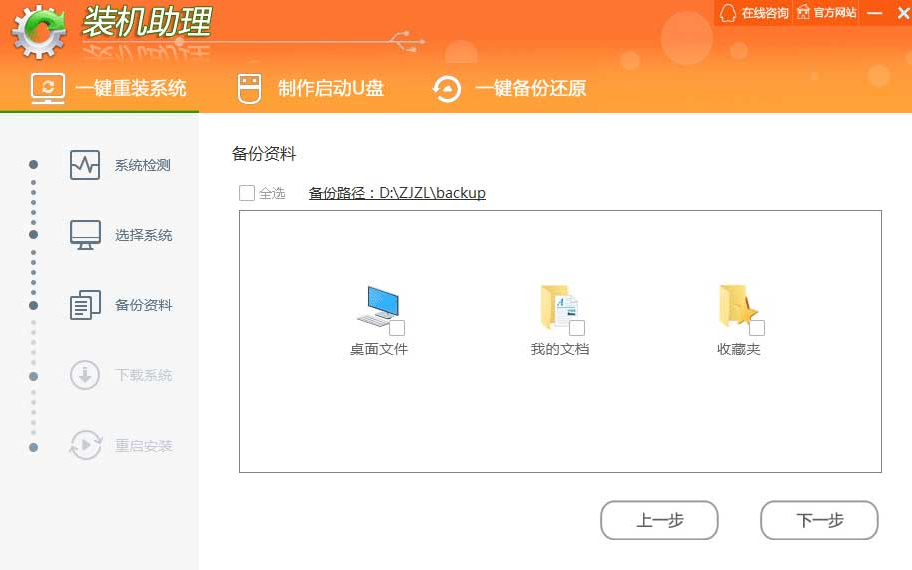 3、選擇需要備份的資料,建議用戶手動備份系統盤和桌面有用的文件到其他盤。