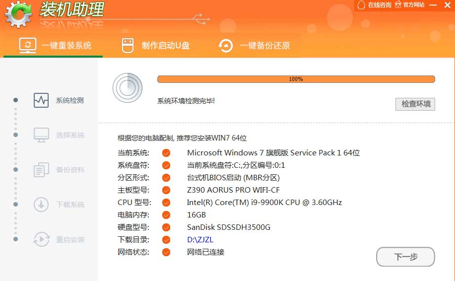 1、下載并安裝裝機助理,打開后等待軟件檢測當前系統環境。