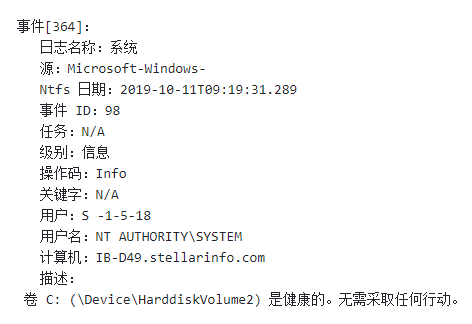 5、查找并檢查 NTFS 源事件詳細信息。例如,