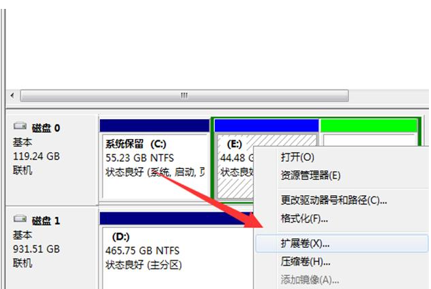 步驟七:然后鼠標單擊c盤,會彈出擴展卷的選項。