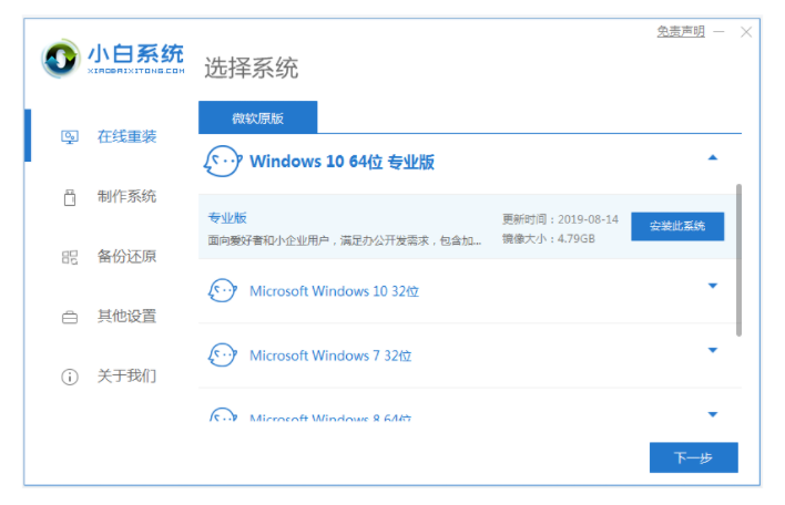 1、進入小白系統官網,找到小白系統官網電腦版工具,進行下載,打開后就可以選擇需要安裝的系統,點擊安裝此系統。