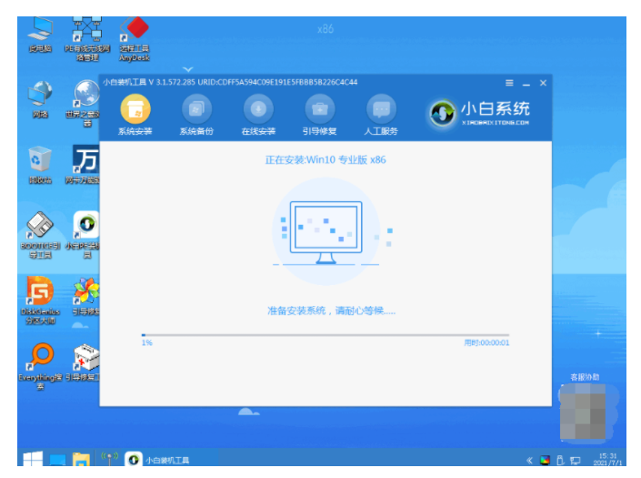 5、等待小白裝機工具自動開始安裝系統。