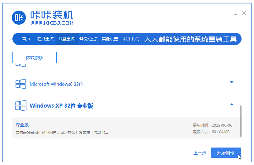 3、勾選需要重裝的xp操作系統,點擊“開始制作”。