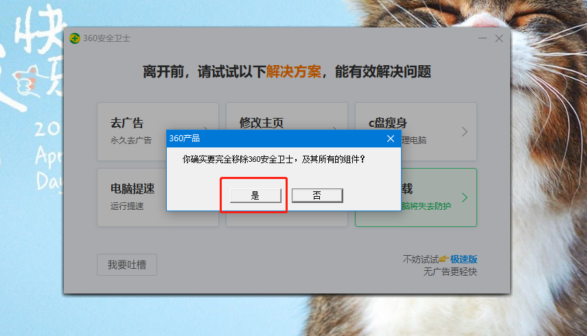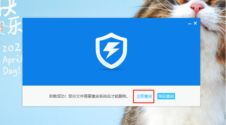 注意事項:安全軟件卸載后建議保存目前未關閉的程序和窗口后重啟一下電腦,有利于徹底刪除卸載軟件程序。