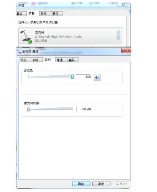 1、進入控制面板,找到聲音選項,在播放選項卡中,雙擊打開屬性窗口,在級別選項卡中,要保持喇叭狀的按鈕為正常狀態。
