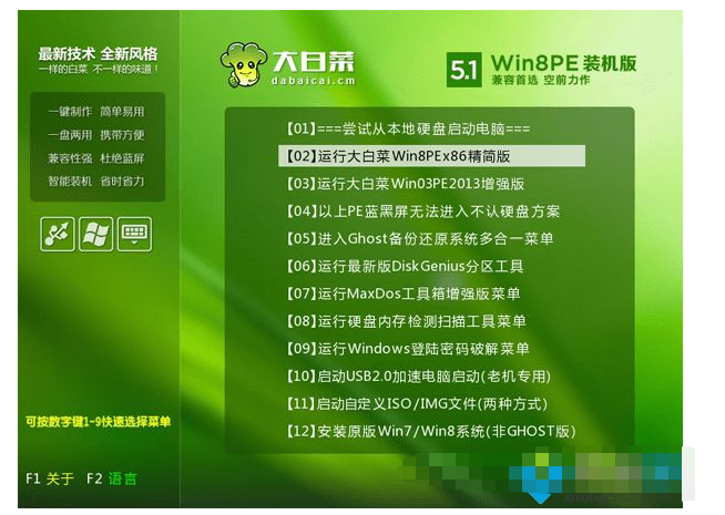 步驟三:此時需要從U盤啟動進入到這個菜單,通過方向鍵選擇【02】選項回車,啟動PE系統,當無法進入則選擇【03】舊版PE系統。