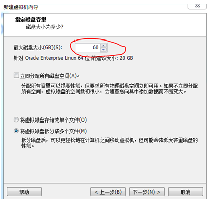 步驟九:由于該系統用于裝ORACLE,所以我建議最大磁盤空間設置要大于20G,然后點擊下一步。