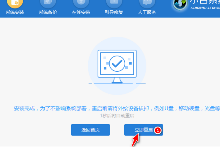 7、等待系統安裝完成之后,按照提示拔出u盤重啟電腦。