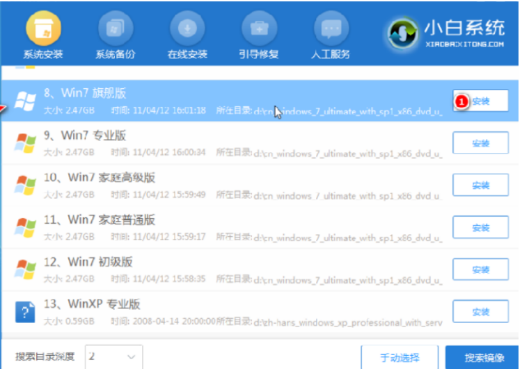 6、pe系統內,打開小白裝機工具選擇需要安裝的系統執行安裝,目標分區選擇“C盤”即可。