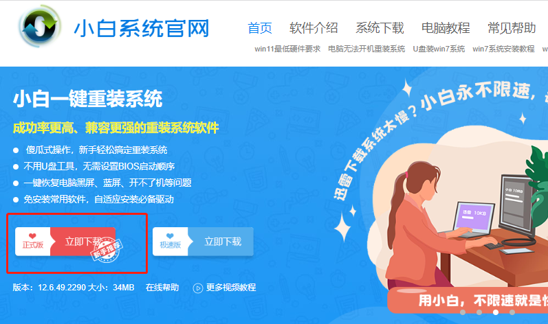 1、進入小白官網,下載安裝小白軟件;