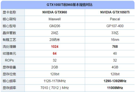 960顯卡和1050ti顯卡哪個好呢?1050ti是NVIDIA在2016年上市的帕斯卡架構中低端顯卡,960顯卡雖然出生比1056ti早,但是也有其不俗的實力,所以下面就讓我們看看哪個更好吧。