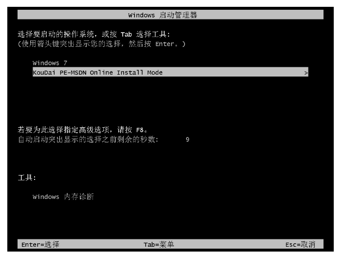 5、重啟完電腦之后我們會進入到Windows啟動管理器界面。