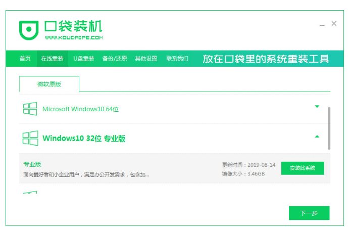 1、下載并運行一個口袋裝機的系統重裝軟件。