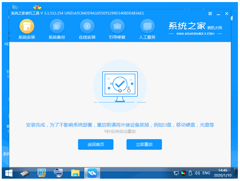 2、接著等待軟件下載系統鏡像和進行環境部署,完成后點擊立即重啟。