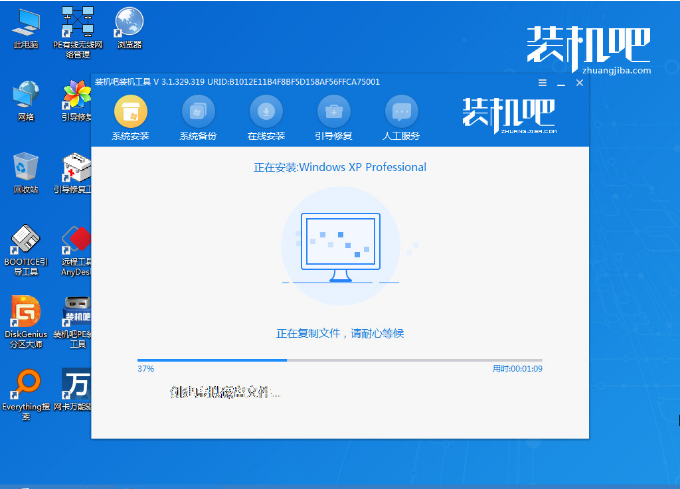 8.當進入到桌面后,我們打開裝機吧裝機工具,將會開始自動安裝系統,耐心等待安裝完成即可。