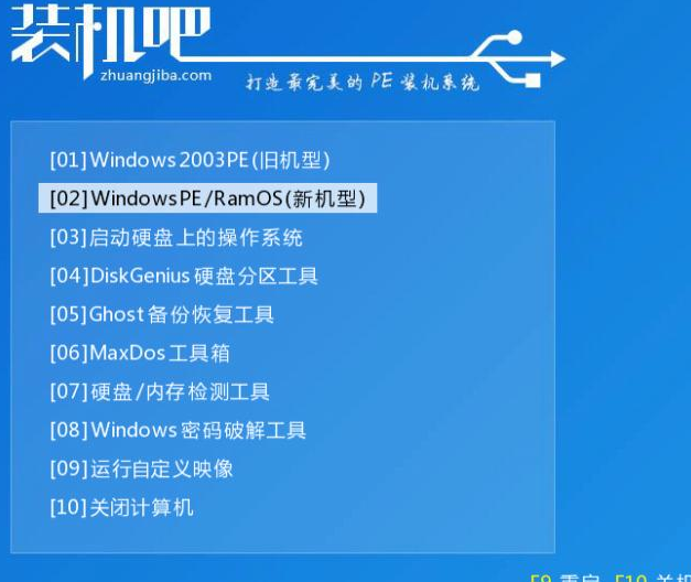 7.此時會進入到pe系統主界面,這時我們選擇“02”進入系統.