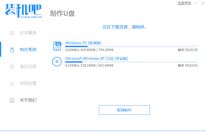 2.下載安裝機吧一鍵重裝系統軟件并打開,單擊“制作系統”選項,選擇制作u盤,單擊開始制作。