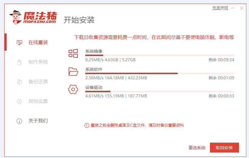 2、然后魔法豬會自動下載系統鏡像等文件,請耐心等待。