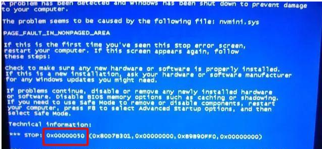 步驟四:但是出現代碼0x00000050,我們還是需要重啟按下F8進入安全模式的,然后卸掉所有的新近安裝的硬件。