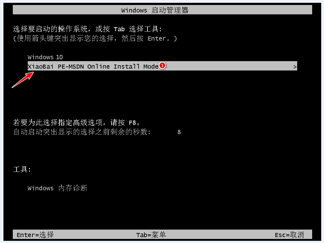 4、重啟后進入啟動管理器頁面,選擇第二項,回車進入pe系統。
