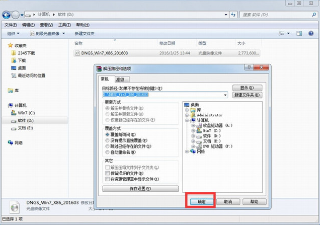 2、此時我們解壓所下載的"DNGS_Win7_X86_201603.iso"鏡像。