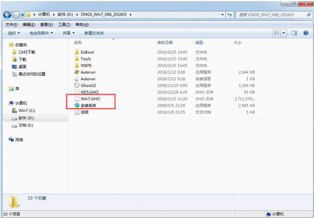 1、我們先下載Ghost Win7系統鏡像"DNGS_Win7_X86_201603.iso"到本地硬盤上(我這里下載在D盤上)。