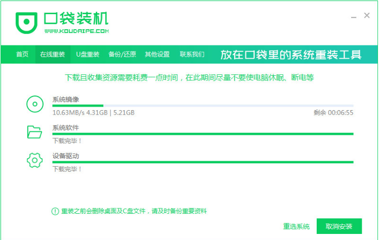 步驟一:首先下載一個口袋裝機的系統重裝軟件并打開。