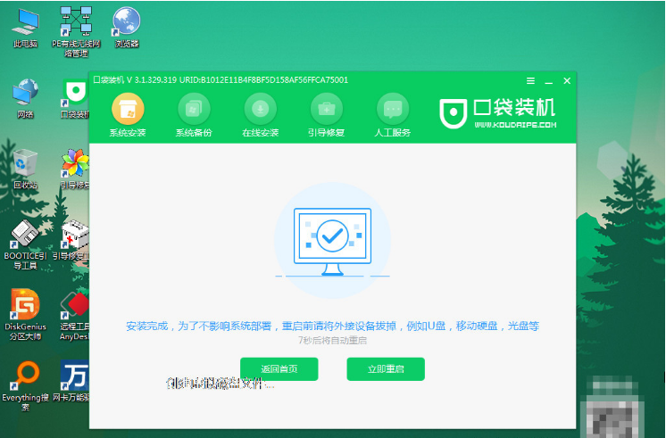 3、耐心等待系統安裝,環境部署完畢之后我們點擊立即重啟電腦。