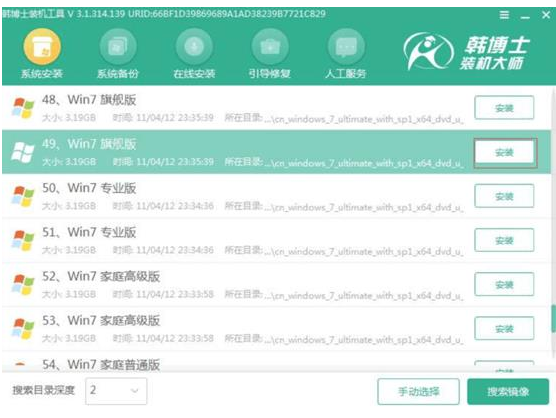 步驟三:電腦成功進入安裝工具頁面之后,直接選擇U盤下的win7文件進入安裝。