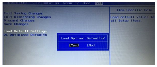3、按方向上鍵選擇Load Default Settings,回車,選擇Yes,回車,加載Legacy默認配置,默認會禁用Secure