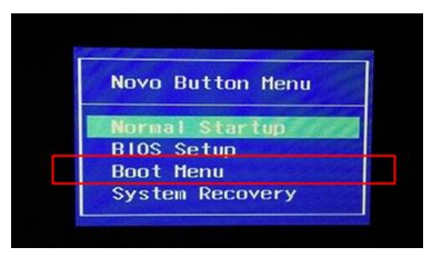 2、此時開機并調出novo button menu,按鍵盤的方向鍵選擇Boot Menu,按回車鍵;