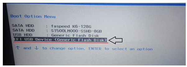 2、隨后調出啟動管理菜單,如果有兩個U盤,EFI USB Device表示uefi模式,USB