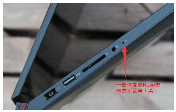 1、插入U盤啟動盤,在關機狀態下按novo一鍵恢復鍵,部分型號的筆記本是在電源鍵旁邊,部分是在兩側,若是一個小孔,則需要使用牙簽;
