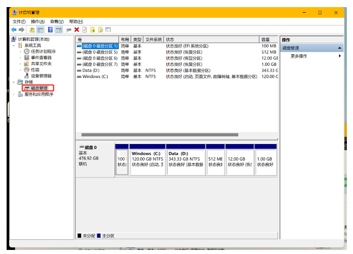 3、可以看到右下角深藍色為主分區,而深黑色的為未分配,所以,我們可以右鍵“新建”即可。