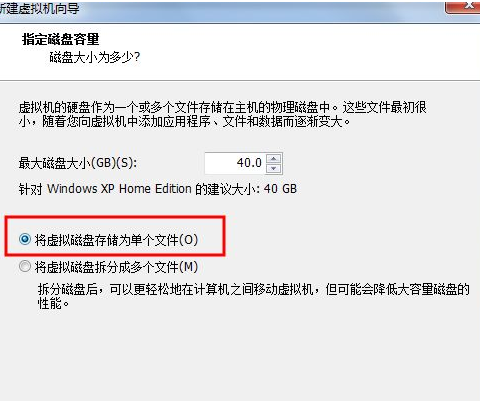 5、選擇輸入較大硬盤的大小,啟用將虛擬磁盤存儲為單獨文件。